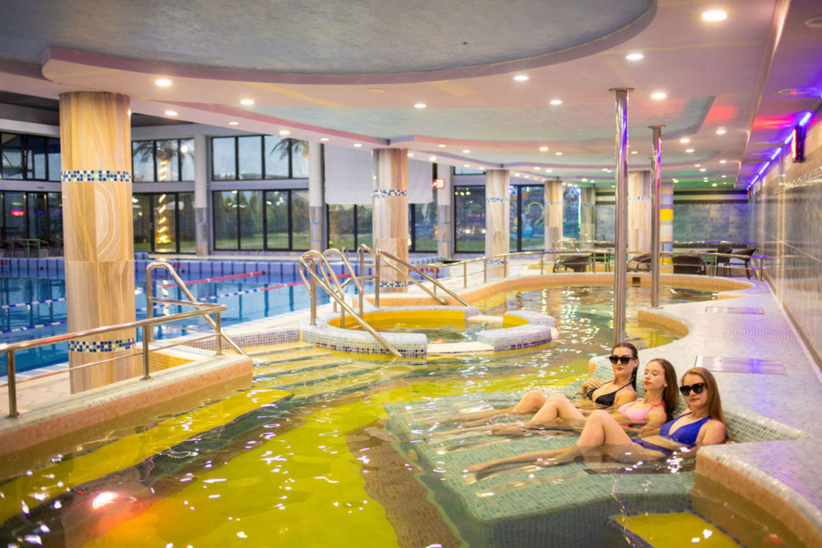 Інформуємо вас, що вода у басейнах дезінфікується сполуками хлору, які нейтралізують усі шкідливі бактерії та віруси. Випари хлору з поверхні басейну також дезінфікують повітря на території. Усі поверхні, в тому числі шезлонги, крісла, поручні і т.д., також регулярно дезінфікуються.