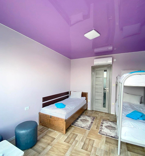 В міні-готелі є 1 номер "НАПІВЛЮКС СІМЕЙНИЙ": одне двоспальне та три одинарних ліжка (2000 грн за добу)